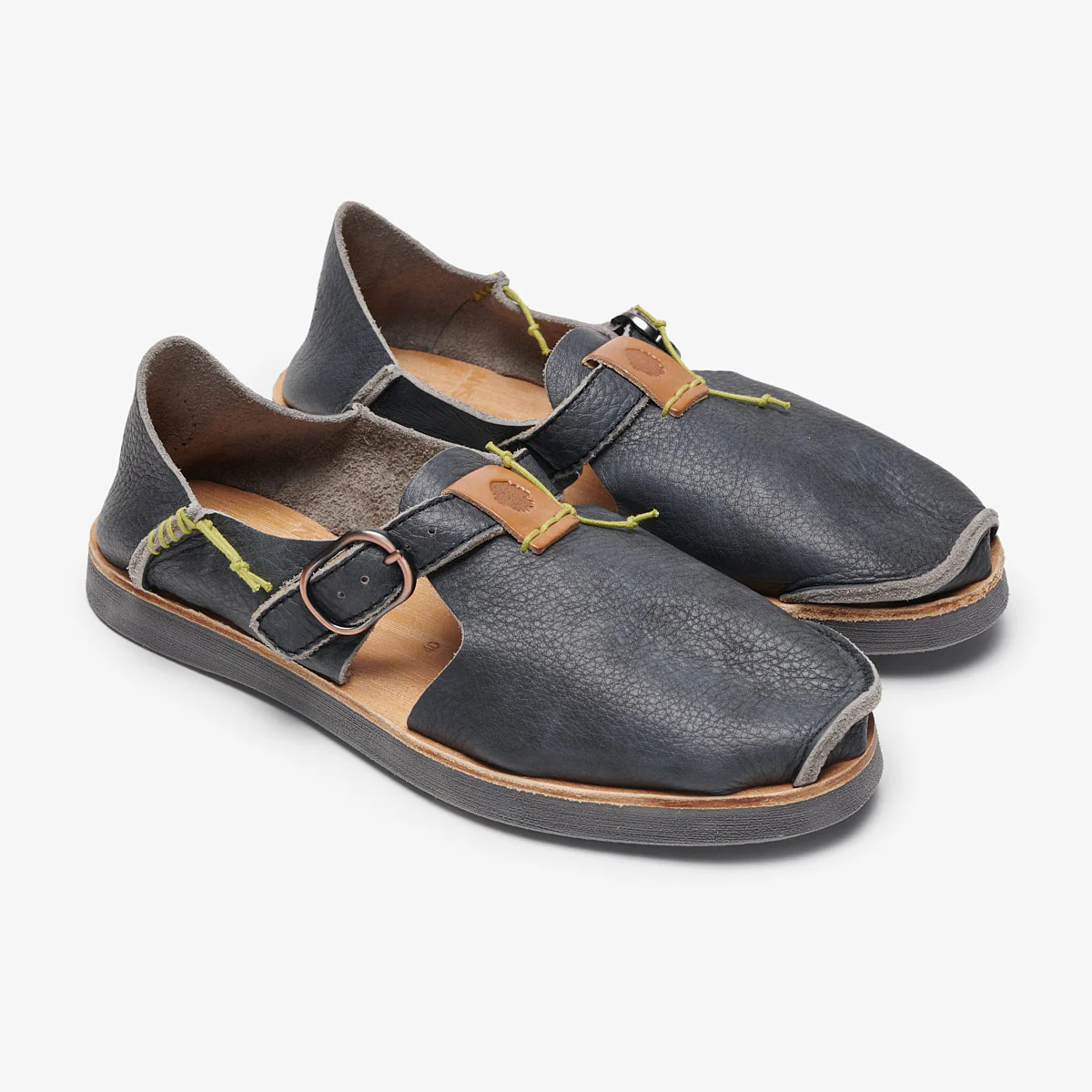 unisex slip-on handmade with raw edge leather with hippy soul.